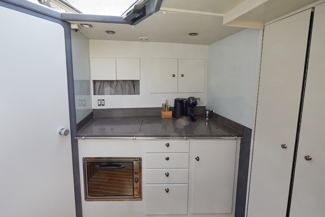 Inside, the yacht comfortably sleeps 4 guests, featuring a well-appointed interior with a cozy saloon, a fully equipped galley, and ample storage throughout. Outside, the flybridge and open cockpit provide generous space for entertaining or soaking in panoramic views.
