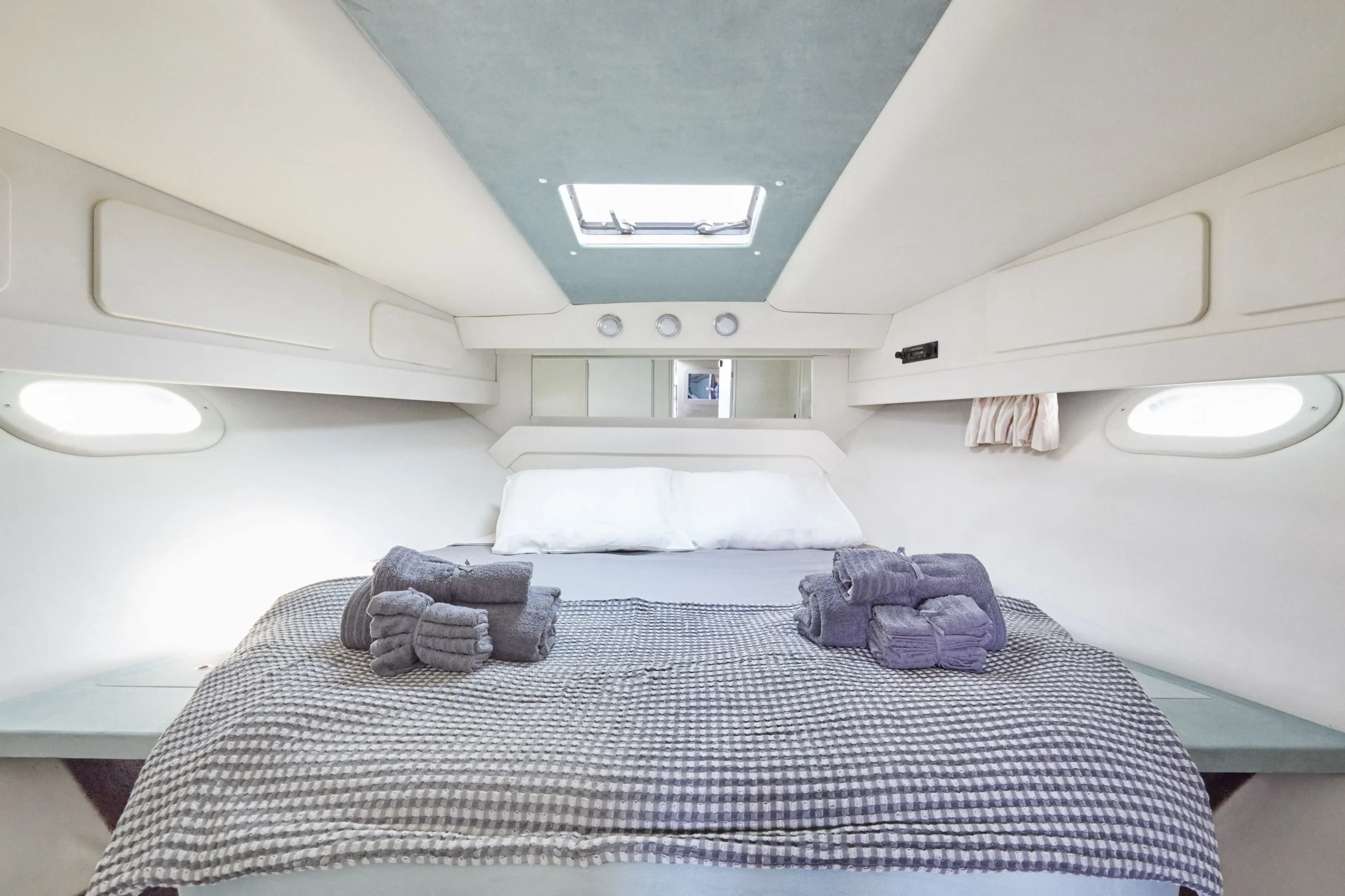 A powerful and spacious sport cruiser, the Sunseeker Travado 40 offers exceptional performance with twin Caterpillar diesel engines, a cruising speed of 15 knots, and luxurious interior space. Ideal for coastal adventures or extended stays aboard.